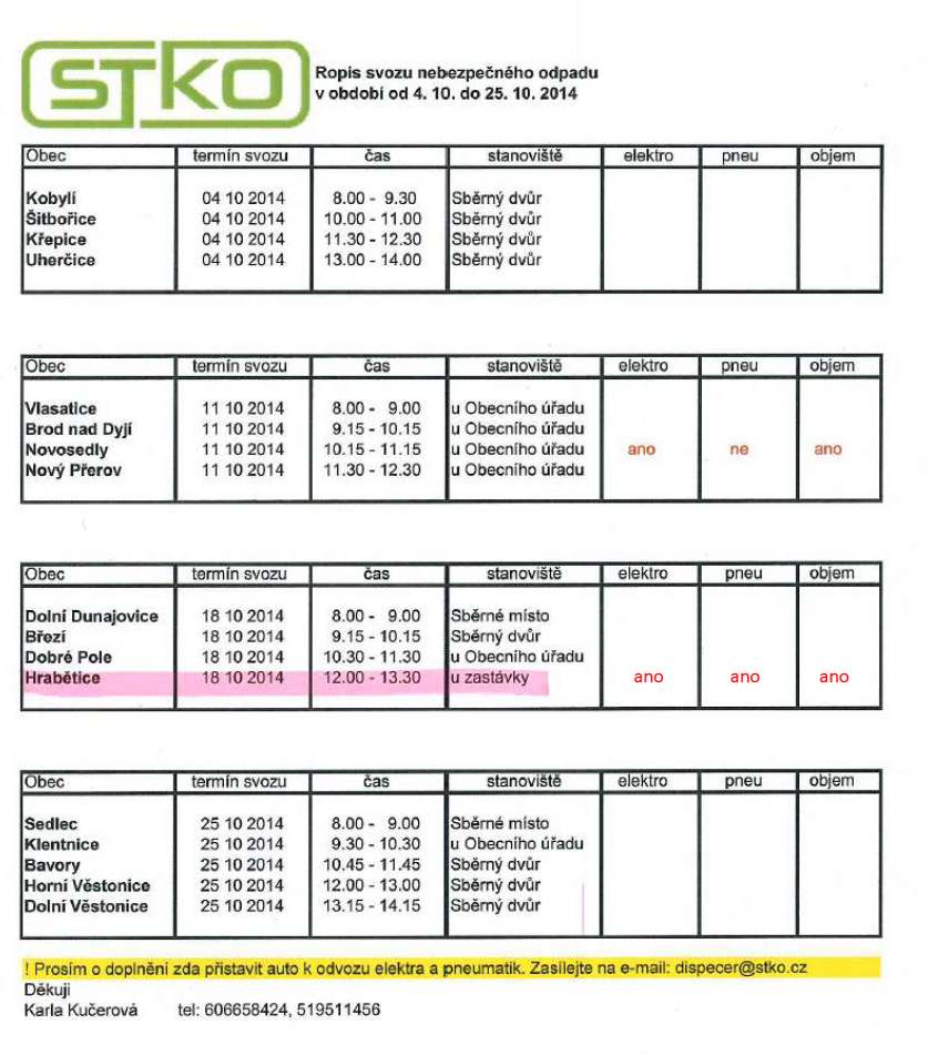 Úvod > Aktuálně > Rozpis svozu nebezpečného odpadu - říjen 2014
