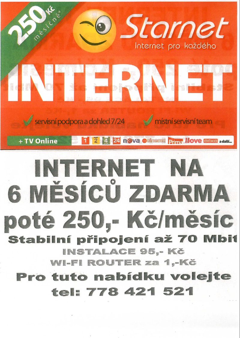 Úvod > Aktuálně > Starnet - nabídka internetového připojení