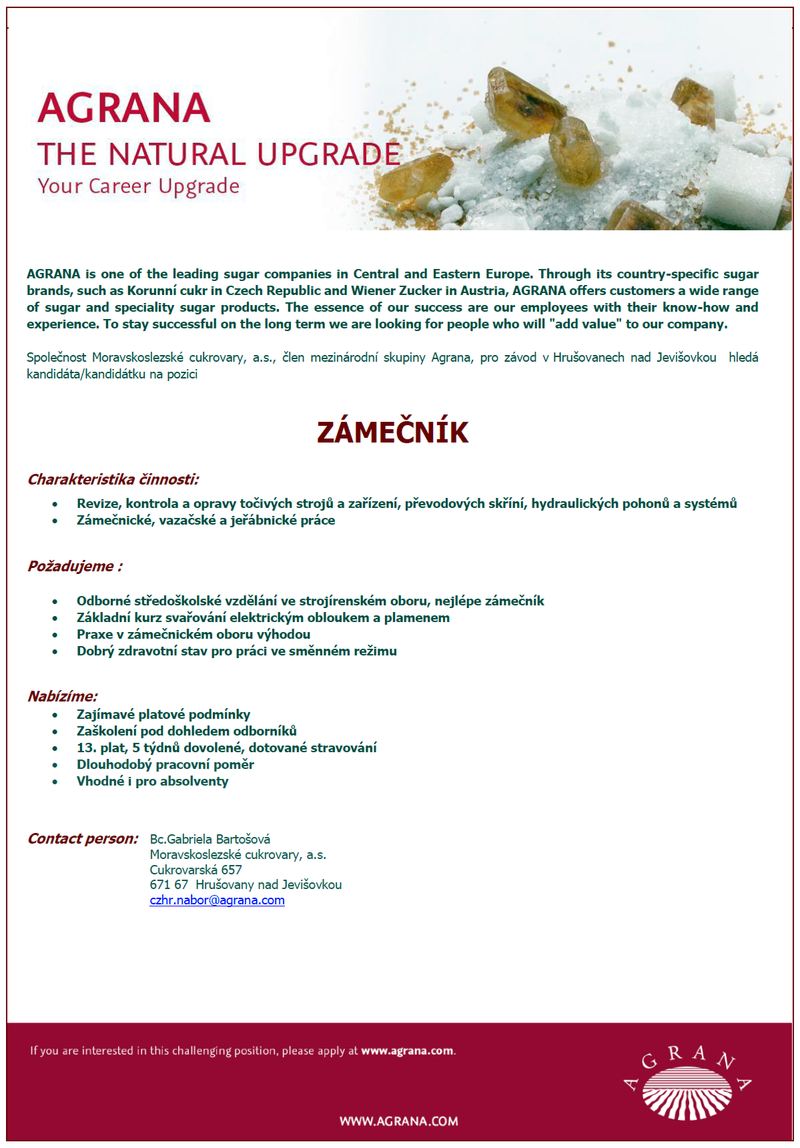 Úvod > Aktuálně > Volné pracovní pozice (Moravskoslezské cukrovary, a.s.)